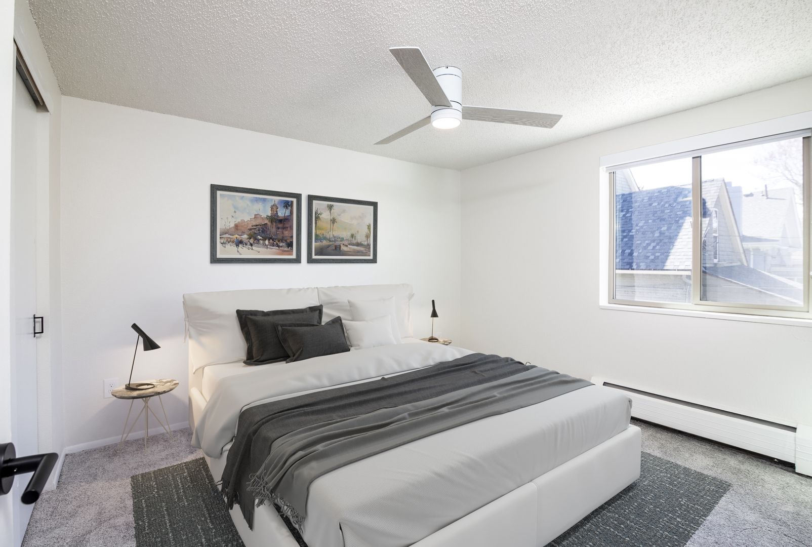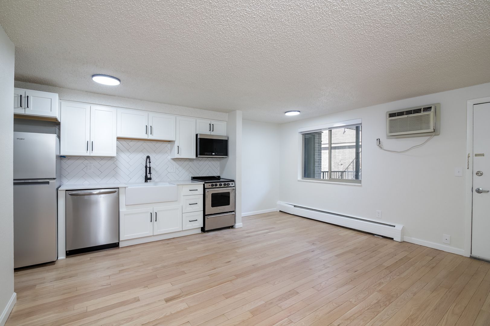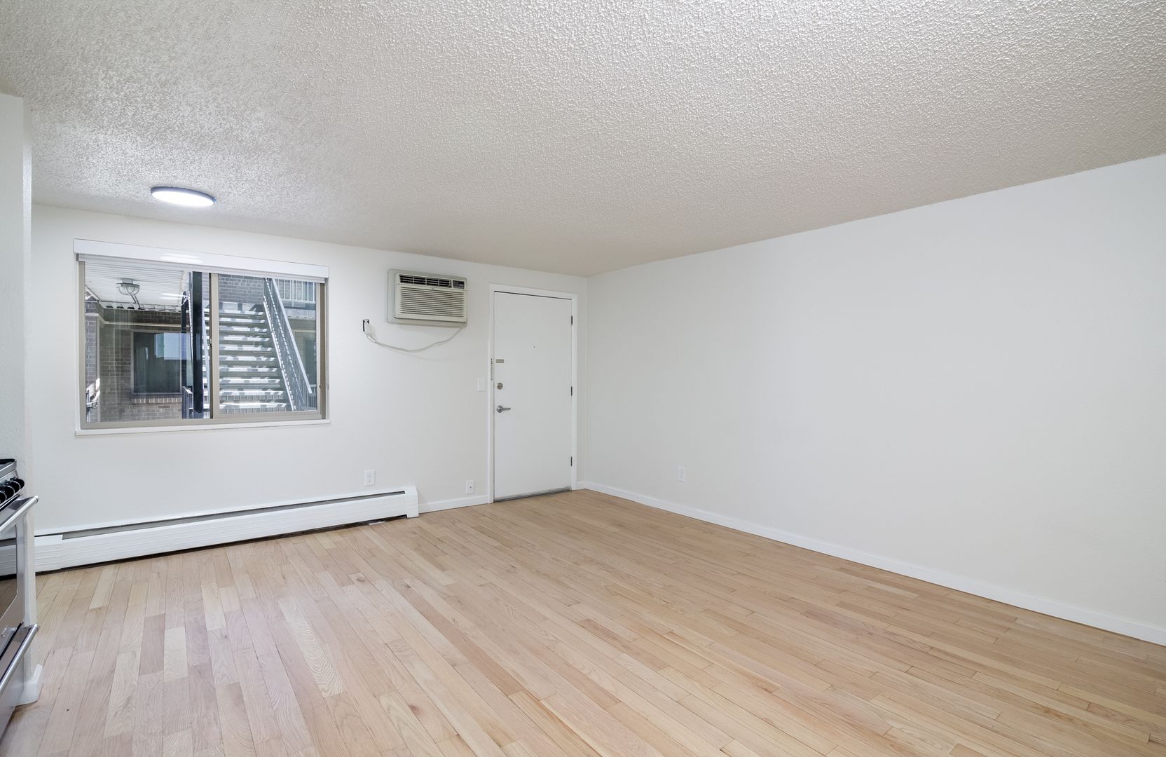 - Baseboard heat and window-unit AC with individual climate control